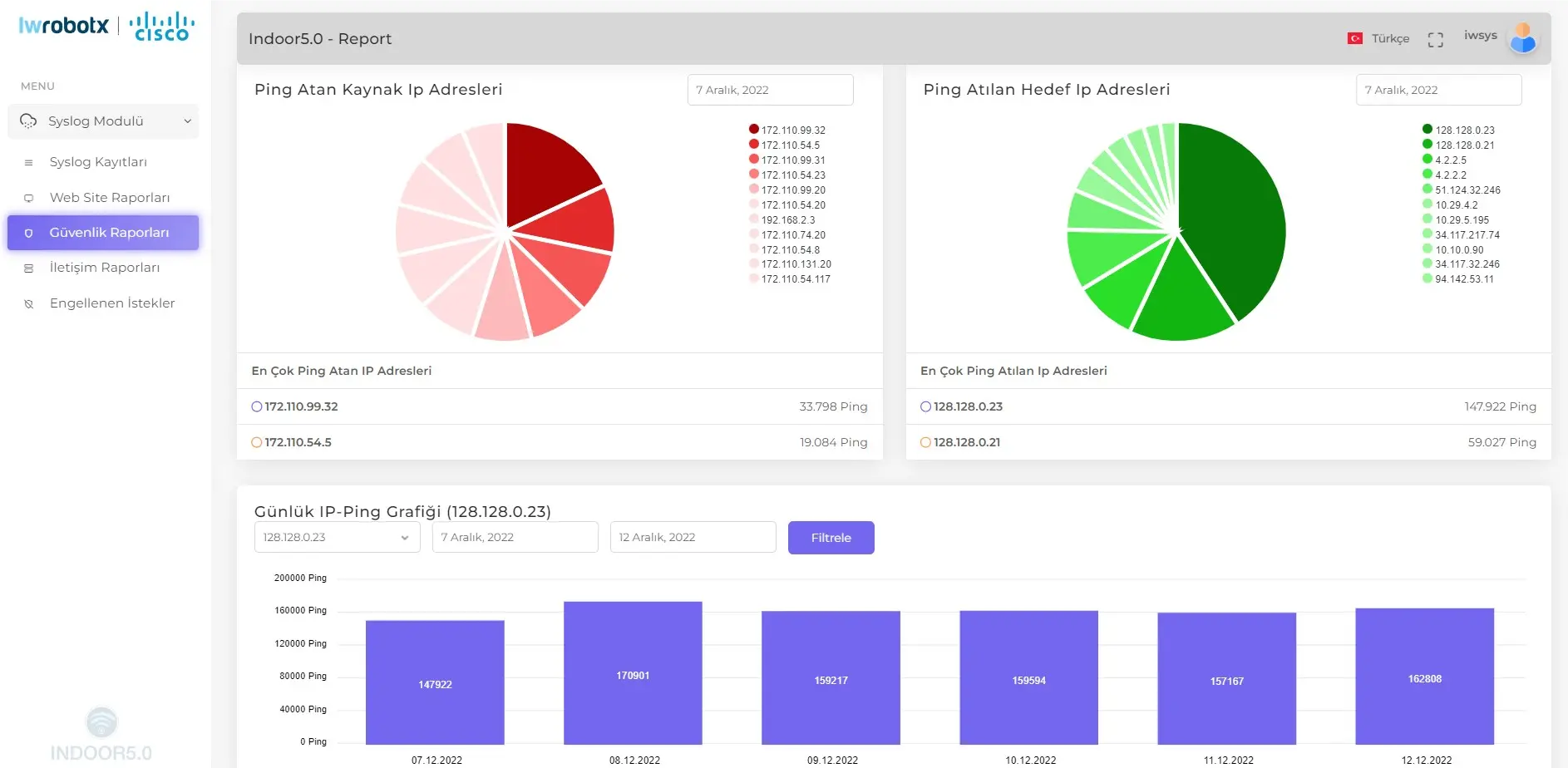 SysLog; Meraki Firewall log verilerinin takip edilerek raporlandığı bulut tabanlı yazılım çözümüdür. Çoklu Mağaza Network yönetimi için Network’teki Firewall’lar üzerinden gelen veriler anlamlı hale getirilip bulut tabanlı SysLog Dashboard üzerinde gösterilmektedir.